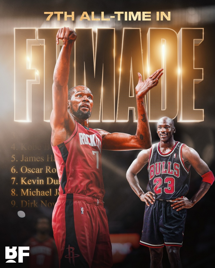 杜兰特本场迎来罚球里程碑,他的生涯罚球命中数超越乔丹(7327个),升至NBA历史第七位。接下来他将追赶奥斯卡-罗伯特森(7694个)。排在罚球命中数第一的是卡尔-马龙(9787个)。
